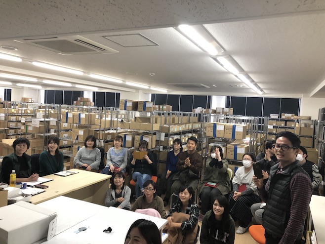 정답은 이쪽 ↓! Skype너머의 방글라데시의 공장의 멤버들입니다! 압권이죠.